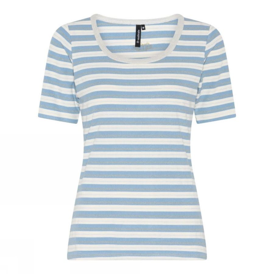 Denne fine T-shirt fra Soulmate er en skøn basisstyle med et elegant twist. De lyseblå og hvide striber giver et friskt og sommerligt udtryk, som passer perfekt ind i en moderne garderobe.