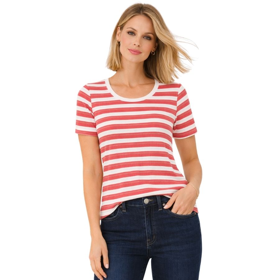 Frisk og feminin T-shirt med striber – perfekt til et sommerligt hverdagslook.