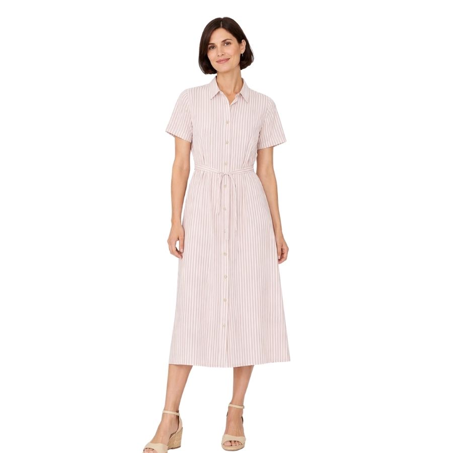 Klassisk skjortekjole med fine striber – let, feminin og nem at style.