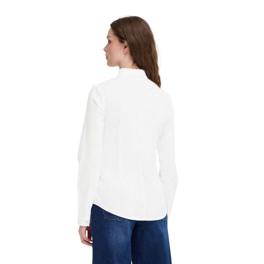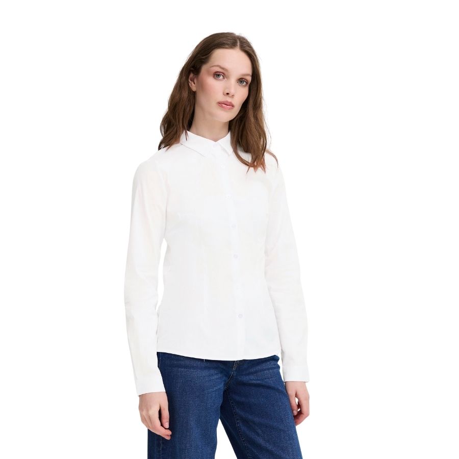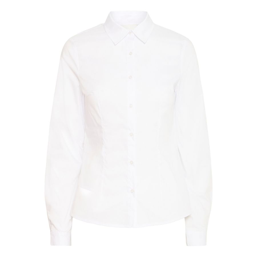 Denne klassiske hvide skjorte fra ICHI er et sikkert valg i enhver garderobe. Skjorten har et tidløst design med krave, gennemgående knaplukning og lange ærmer med manchet. Det lette og glatte materiale giver et elegant udtryk, som gør skjorten nem at style både til hverdag og mere formelle anledninger. Brug den med jeans for et afslappet look eller style den med bukser eller nederdel til job og pænere brug. En alsidig basisbluse, du kan bruge sæson efter sæson.