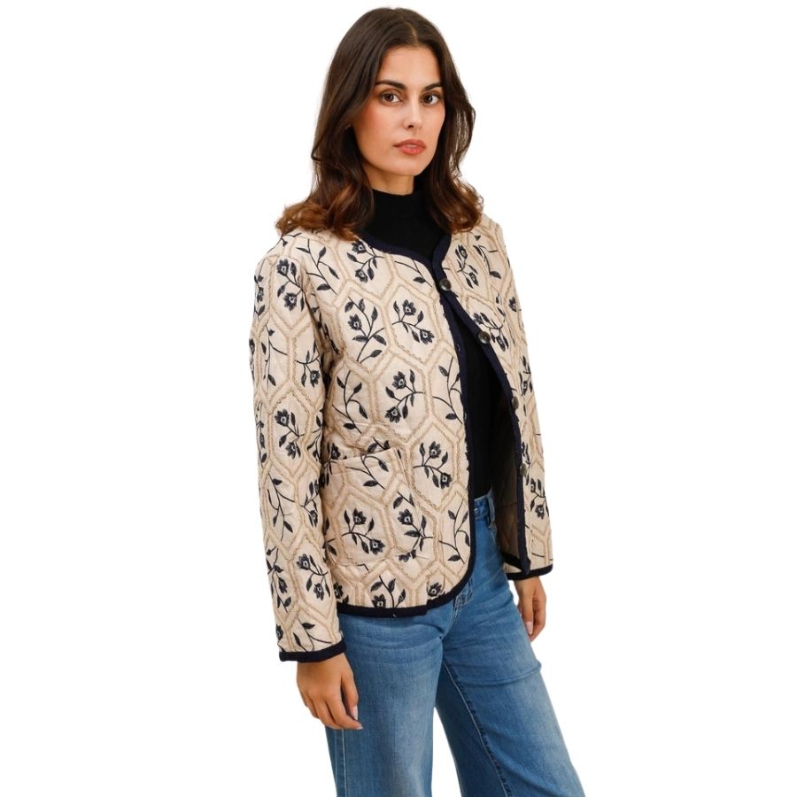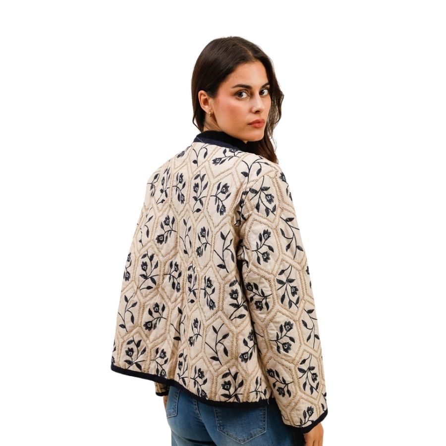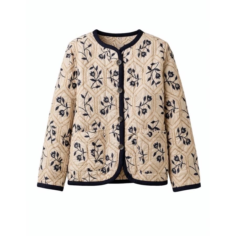 Denne Mooya jakke er et smukt eksempel på fransk boheme med et elegant og tidløst udtryk. Jakken er fremstillet i det fine quiltede mønster med diskrete blomsterdetaljer giver jakken et eksklusivt og feminint look, mens den enkle facon gør den nem at style. Jakken kan bæres åbent for et afslappet udtryk eller lukket for et mere klassisk look. Hos Fruens Hus har vi valgt Mooya, fordi mærket kombinerer fransk elegance med komfort og anvendelighed – tøj der er let at bruge i hverdagen, men som stadig føles særligt og gennemtænkt.