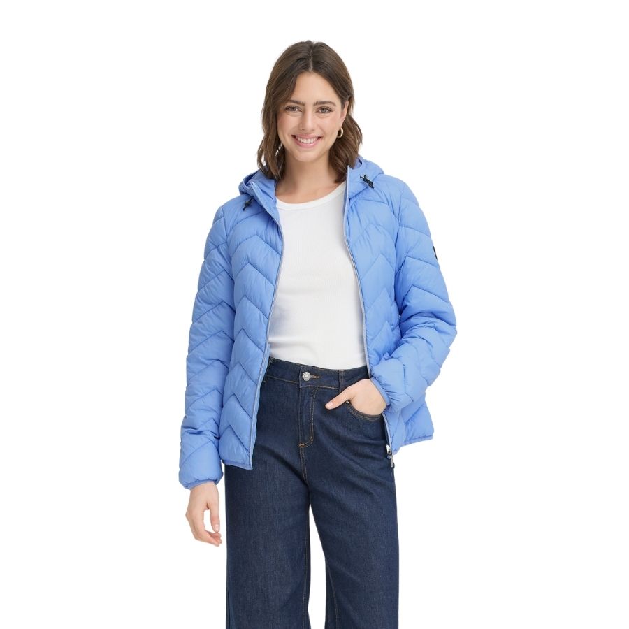 Denne overgangsjakke fra Fransa er et praktisk og stilfuldt valg til forår og efterår. Jakken har et moderne quiltet design, som giver et let og feminint udtryk, samtidig med at den holder dig lun på kølige dage. Den er udstyret med lynlåslukning, hætte og praktiske lommer, hvilket gør den ideel til både hverdag og fritid. Den lyseblå farve giver et friskt og moderne look, som passer perfekt til sæsonens outfits.