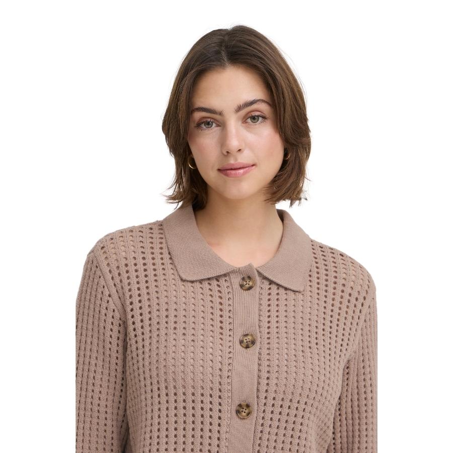 Den varme sandfarve gør cardiganen nem at style og perfekt som et let lag over toppe, kjoler eller skjorter i forårs- og sommergarderoben.