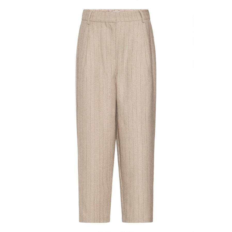 Disse Fransa bukser kombinerer komfort og klassisk design i én og samme model. Den lette sandfarve med diskrete lodrette striber giver et elegant og tidløst look, der både kan styles til hverdag og mere formelle anledninger.