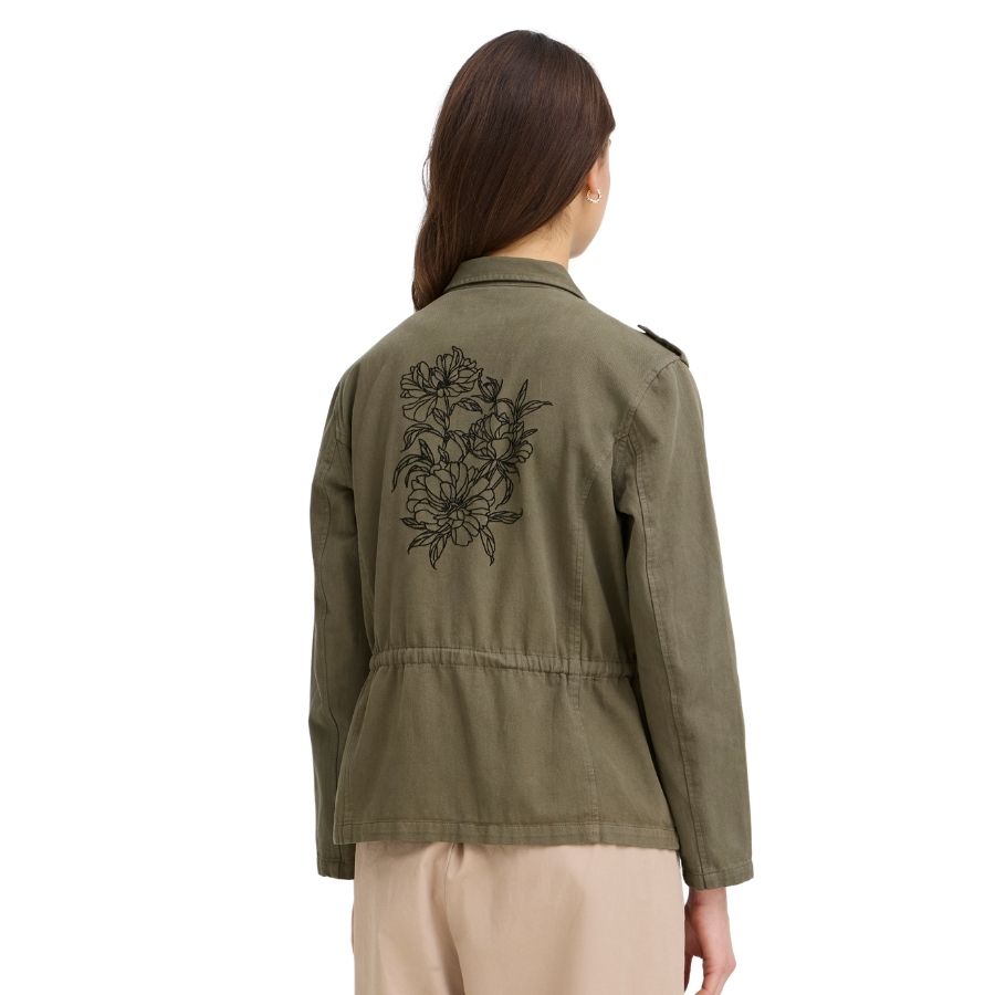 Let og casual jakke fra Fransa i 100% bomuld. En flot army-inspireret jakke med lommer og fine detaljer, som er perfekt til forår og kølige sommeraftener.