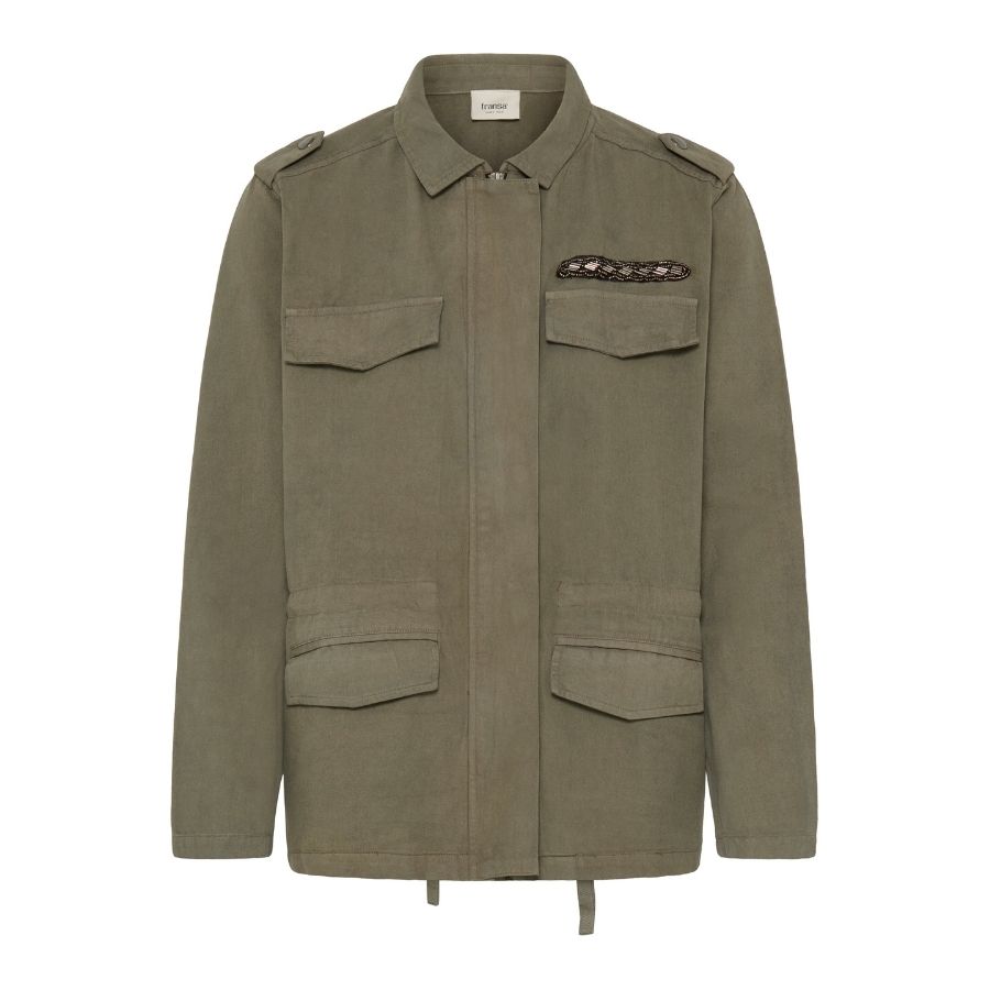Denne stilrene jakke fra Fransa er en skøn hverdagsjakke med et afslappet og moderne udtryk. Jakken er lavet i 100% bomuld, hvilket gør den både behagelig og let at have på. Den army-inspirerede stil med flere lommer giver et cool og praktisk look, mens den diskrete detalje ved brystet tilfører et feminint touch.