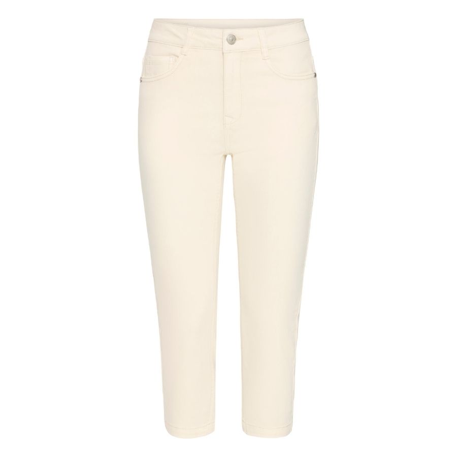 Disse skønne capribukser fra Fransa er et must-have i garderoben, når komfort og stil skal gå hånd i hånd. Den lyse beige farve gør dem nemme at style, og det klassiske design med lommer og knaplukning giver et tidløst look. Materialeblandingen med bomuld, polyester og elastan sikrer en behagelig pasform med god bevægelighed – perfekt til både hverdag og sommerens aktiviteter. En alsidig buks, du kan bruge igen og igen.